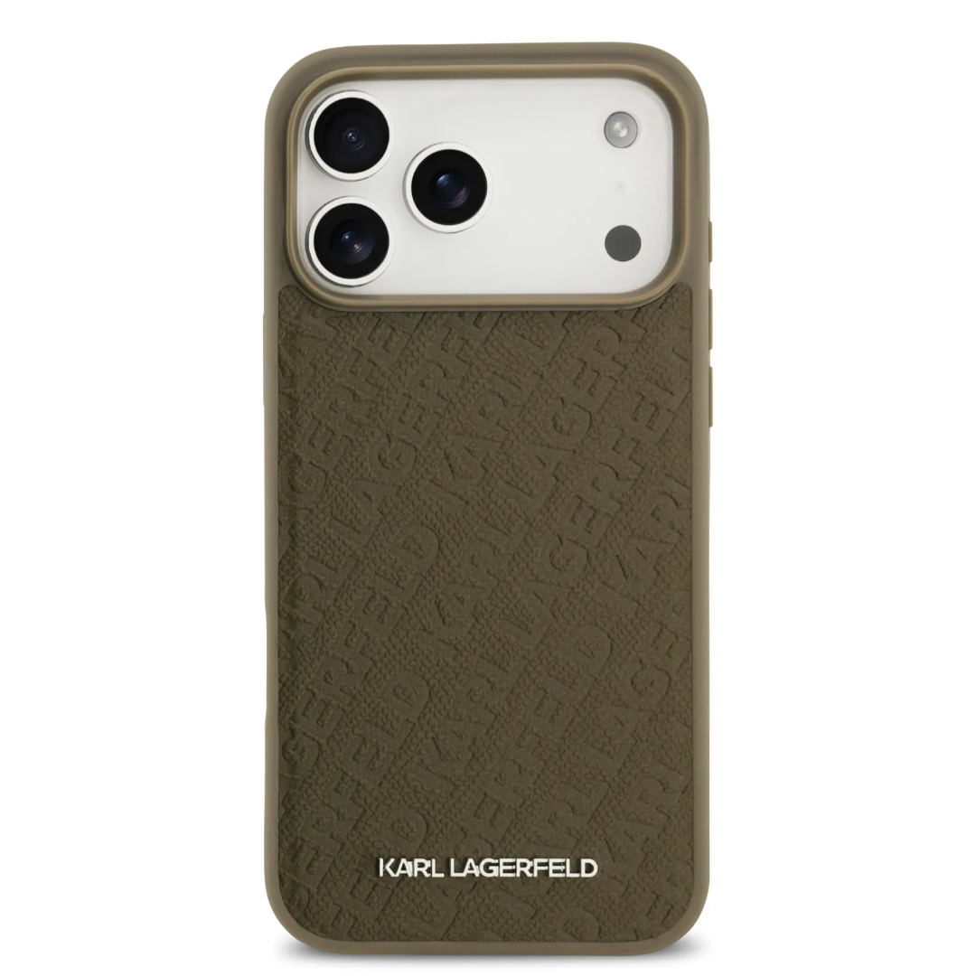 Karl Lagerfeld для iPhone 17 Pro Max MagSafe Full Wrapped PU Leather Case With Karl Grain Brown