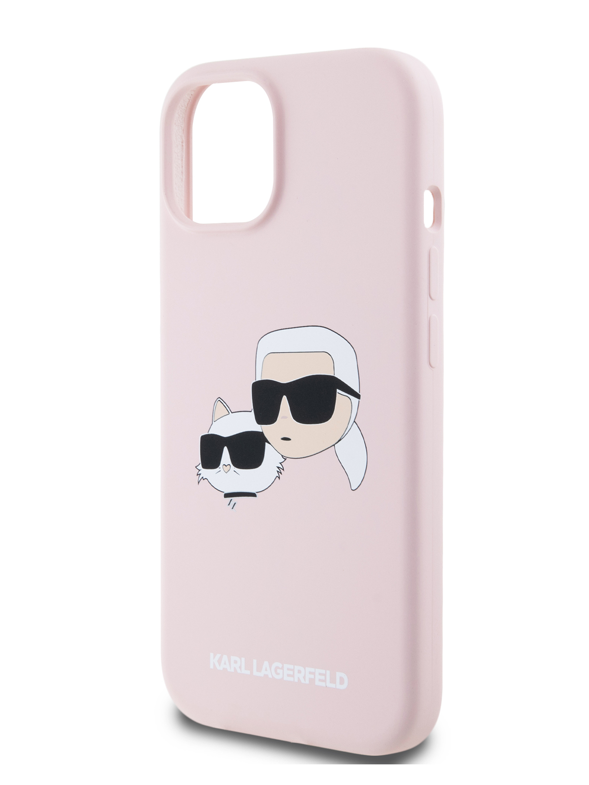 Lagerfeld для iPhone 15 чехол Liquid Silicone NFT Karl & Choupette Head Hard Pink (MagSafe)